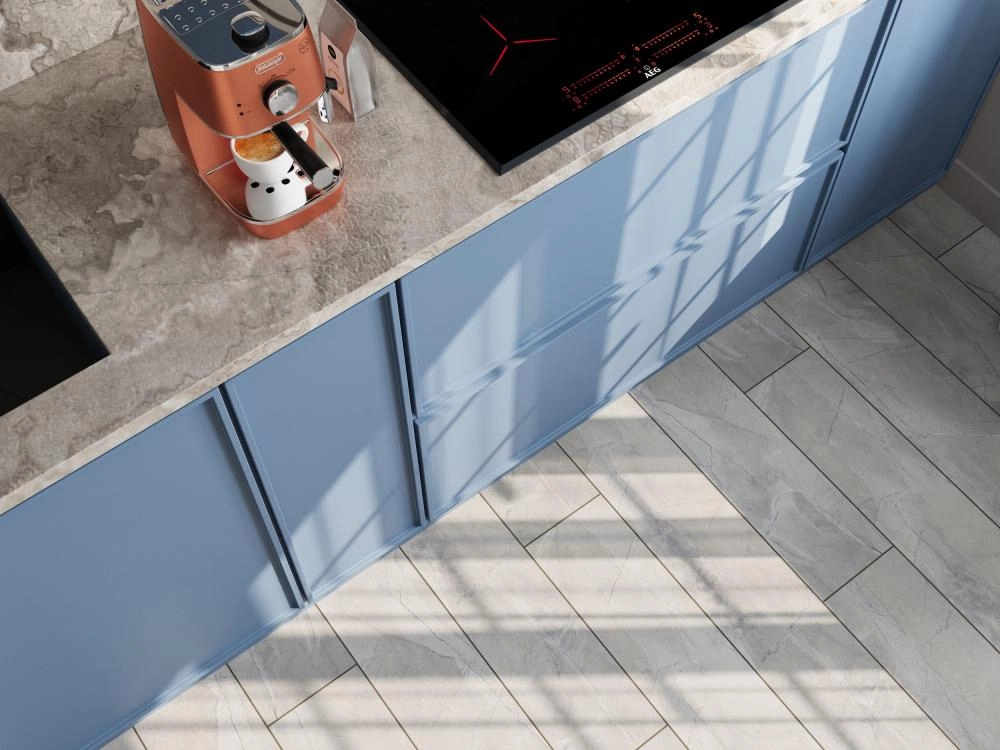 Нейтральный серый оттенок ламината «Мрамор серый» является универсальным решением для множества интерьерных стилей, от минимализма и лофта до современной классики. Он прекрасно гармонирует как с яркими, так и с пастельными цветовыми палитрами мебели и стен.