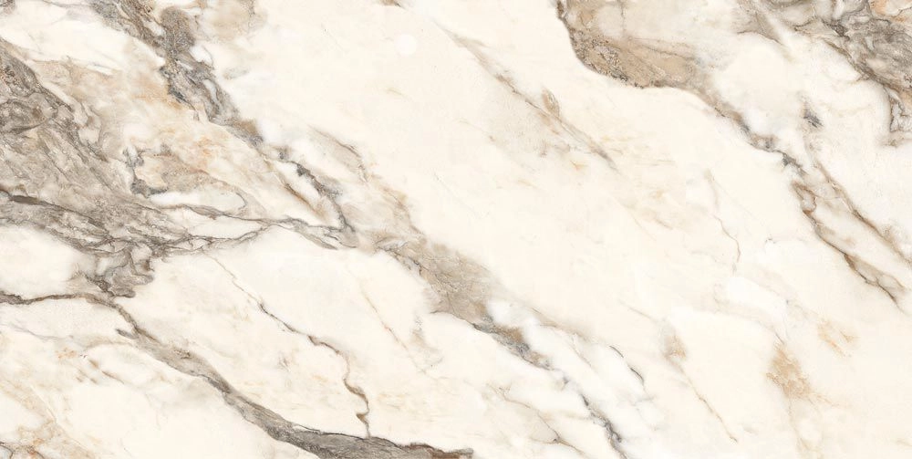 Коллекция CALACATTA BRONZE достоверно повторяет уникальный рисунок мрамора из переплетающихся серых и золотых прожилок.