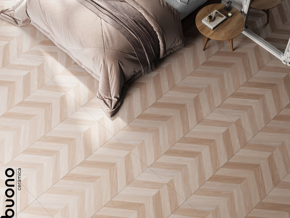 Представляем вам воплощение элегантности и уюта – керамогранит Buono Ceramica Forest Nature Plain Matt. Это не просто напольное покрытие, а настоящее произведение искусства, которое преобразит ваш интерьер, наполнив его светом и теплом натурального дерева. Дизайн плитки выполнен в виде классической укладки «французская елка» или «шеврон», что придает пространству динамику и изысканный шарм, визуально расширяя его.