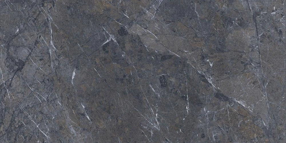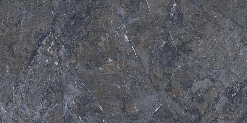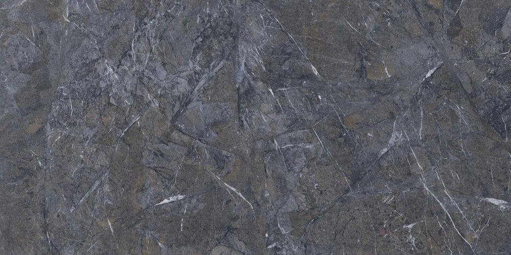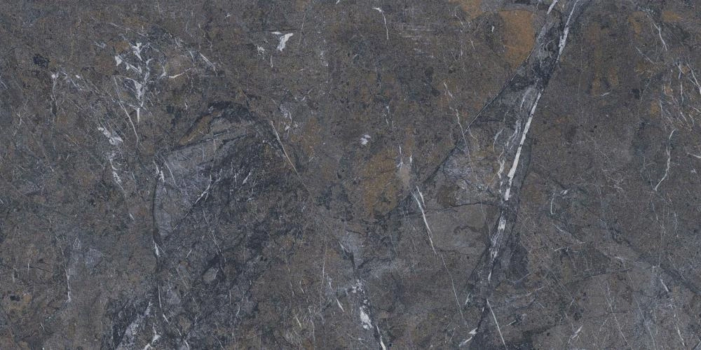 Поверхность керамогранита поражает своей сложной и многогранной палитрой. Глубокий антрацитово-коричневый фон испещрен драматичной сетью прожилок, словно молнии, застывшие в толще камня. Контрастные белые и тонкие золотисто-охристые вены переплетаются, создавая динамичный и завораживающий рисунок. Матовая фактура придает покрытию бархатистую мягкость на ощупь и благородный, сдержанный вид, исключая лишние блики и подчеркивая глубину цвета. Благодаря наличию 8 уникальных графических рисунков (лиц), уложенная поверхность выглядит максимально естественно и монолитно, избегая повторяемости.