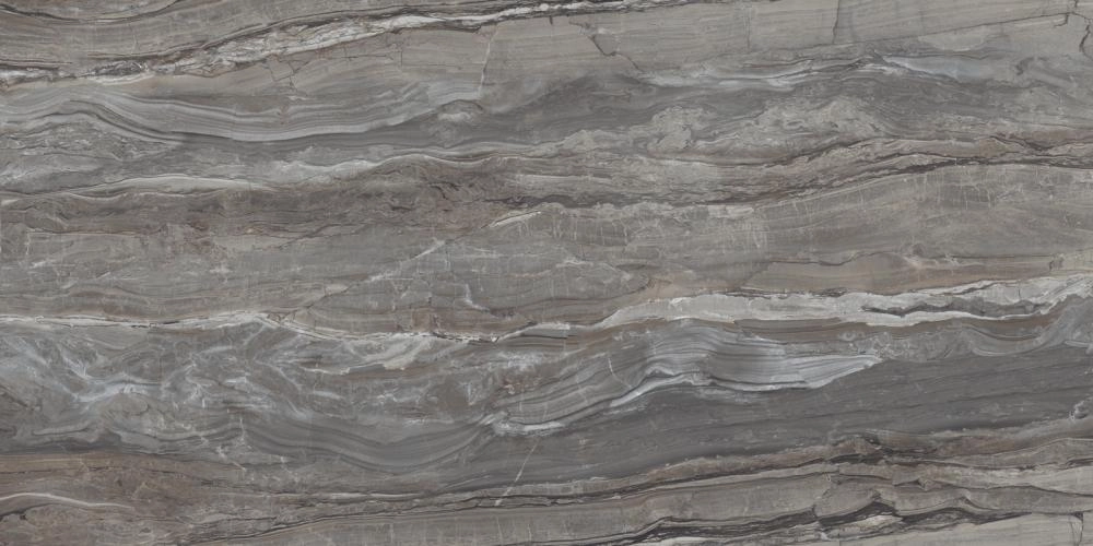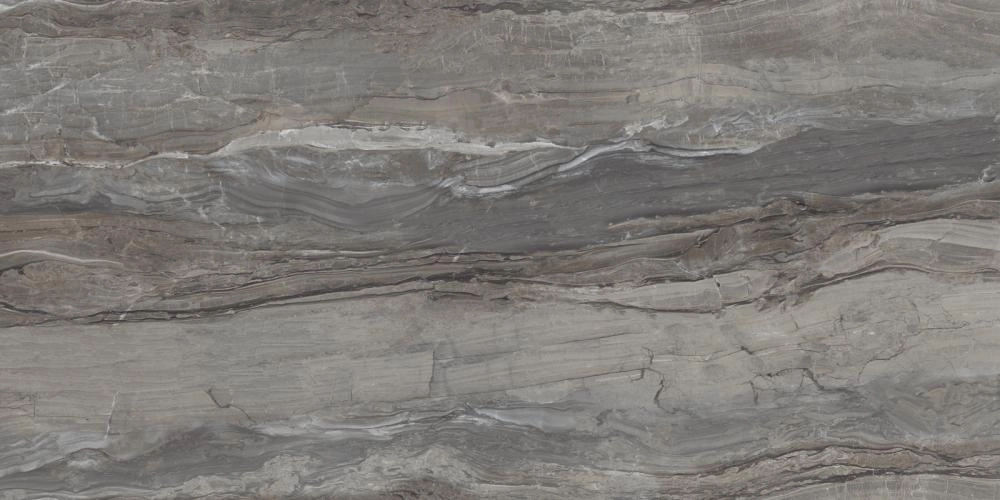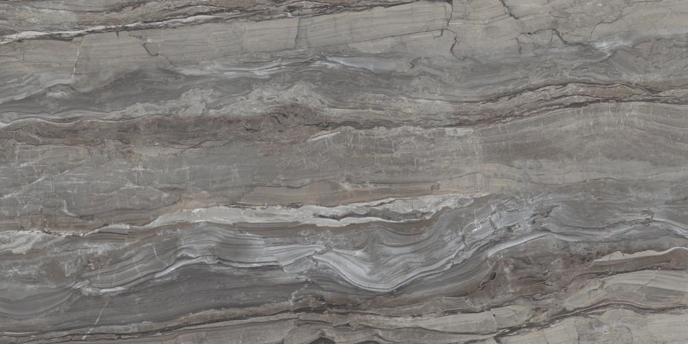 Цветовая палитра этого керамогранита богата и многогранна. В ней гармонично переплетаются глубокие серые, теплые коричневые и мягкие бежевые оттенки, создавая ощущение движения и глубины. Тонкие, контрастные прожилки, словно трещины в скале или потоки воды, добавляют текстуре выразительности и реализма. Этот дизайн идеально подходит для создания акцентных стен или роскошных полов, которые станут центральным элементом вашего интерьера.
