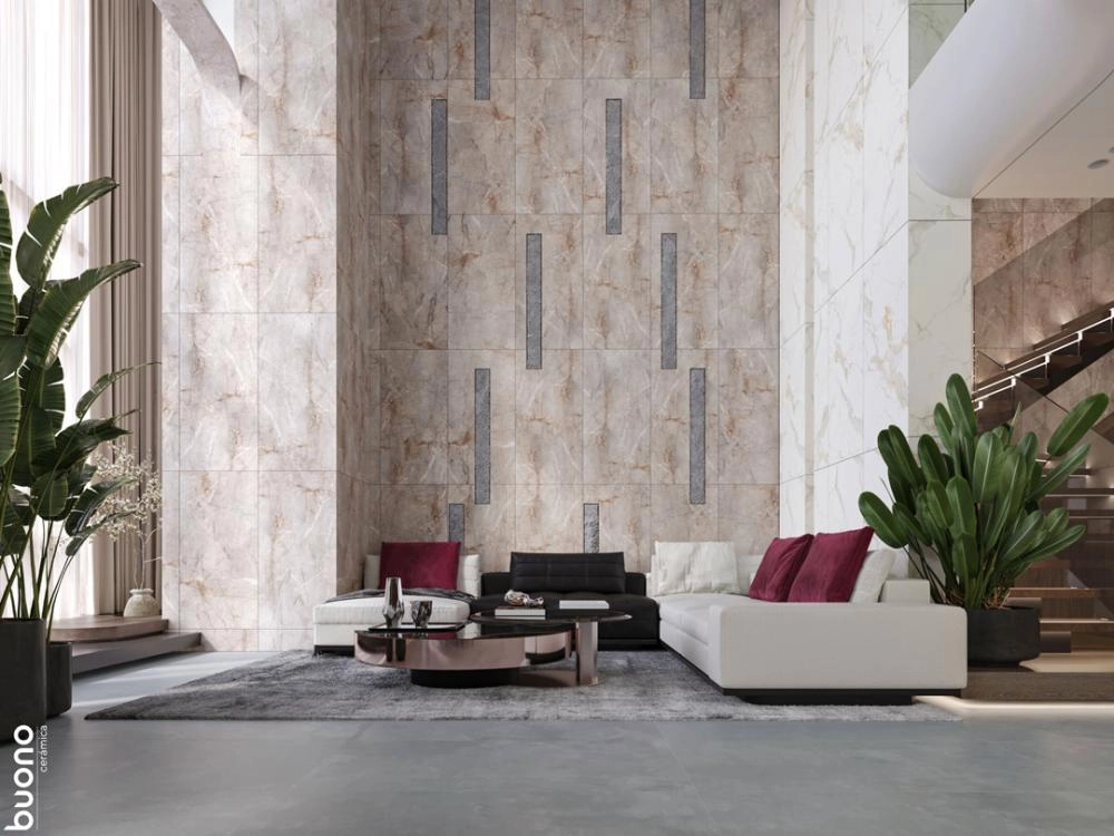 - Крупный формат 1200х600 мм: Визуально расширяет пространство и создает ощущение целостности покрытия.