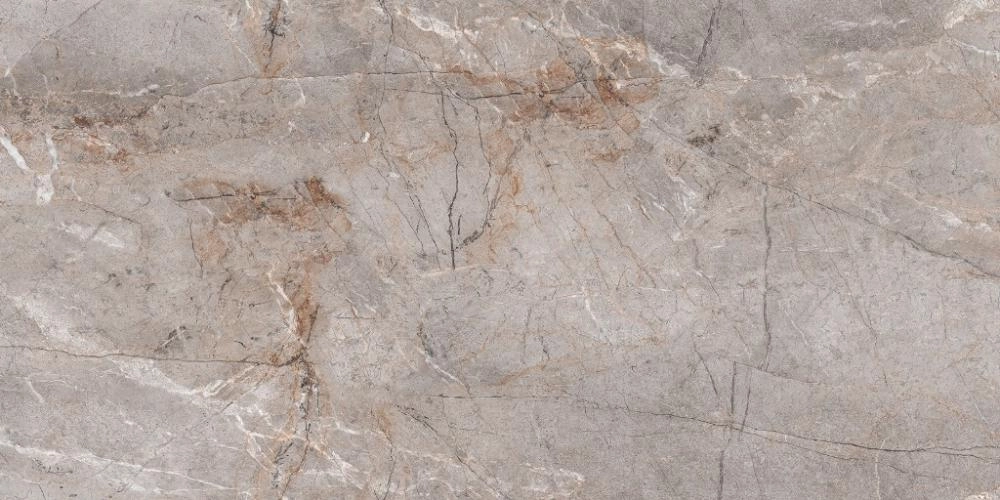 При ближайшем рассмотрении открывается вся глубина рисунка: тонкие белые и темные трещинки переплетаются с более широкими всполохами теплых, медно-коричневых тонов. Эта игра контрастов придает поверхности динамику и неповторимый характер. Матовая поверхность не только подчеркивает естественность текстуры, но и обладает практическими преимуществами: она приятна на ощупь, не создает бликов и менее скользкая, что делает ее безопасным решением для ванных комнат и кухонь.