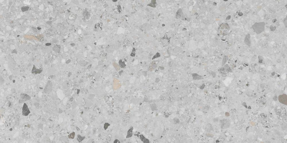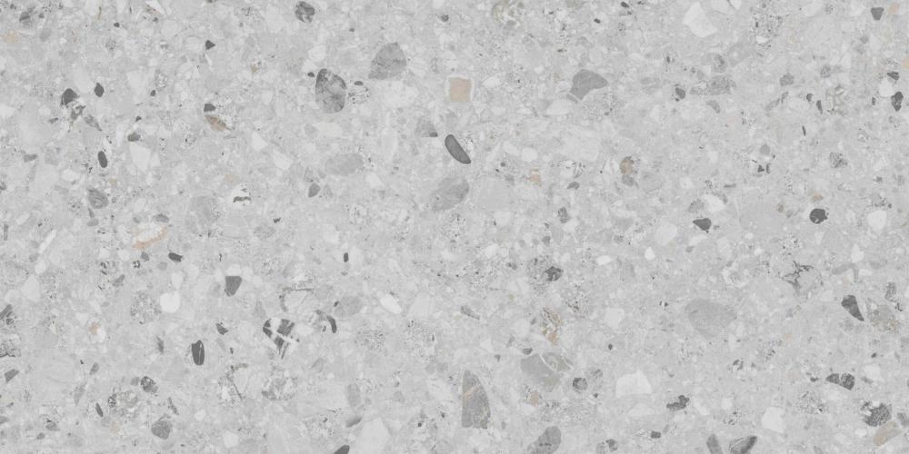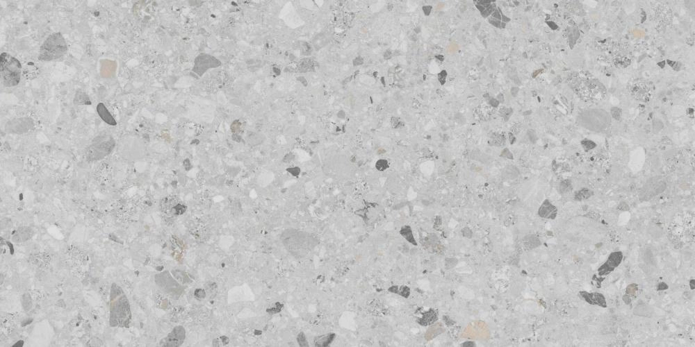 Керамогранит Buono Ceramica Stones Sonata Terra Gris Carving – это воплощение современного взгляда на классический венецианский терраццо. Он создан для тех, кто ценит в интерьере не только эстетику, но и безупречную практичность. Нейтральный светло-серый фон плитки служит идеальным холстом для россыпи каменных фракций различных размеров и оттенков: от насыщенного графитового и чистого белого до едва заметных теплых бежевых вкраплений. Этот сложный и многогранный узор придает полу глубину и динамику, делая его центральным элементом дизайна.