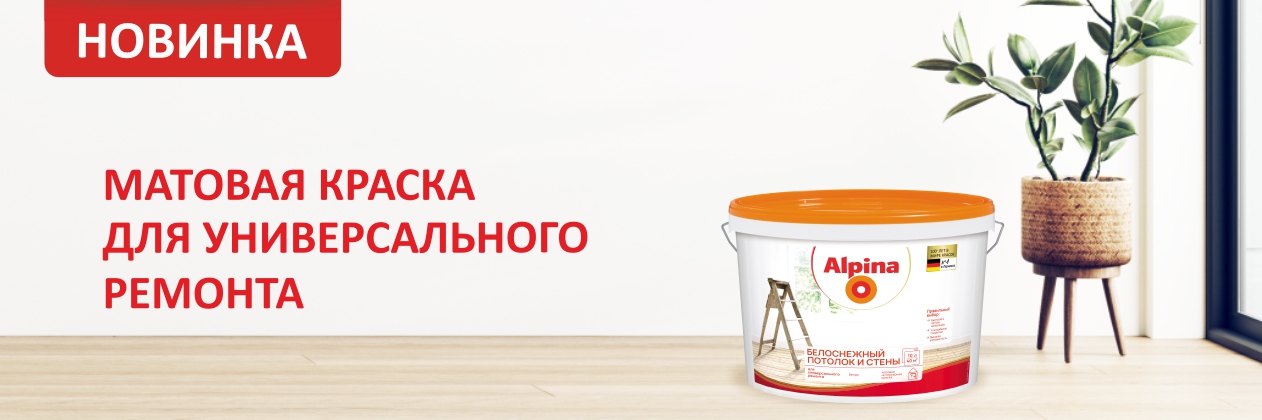 Alpina выпустила обновлённую матовую дисперсионную краску «Белоснежный потолок и стены», разработанную для потолков и стен с обычной нагрузкой.