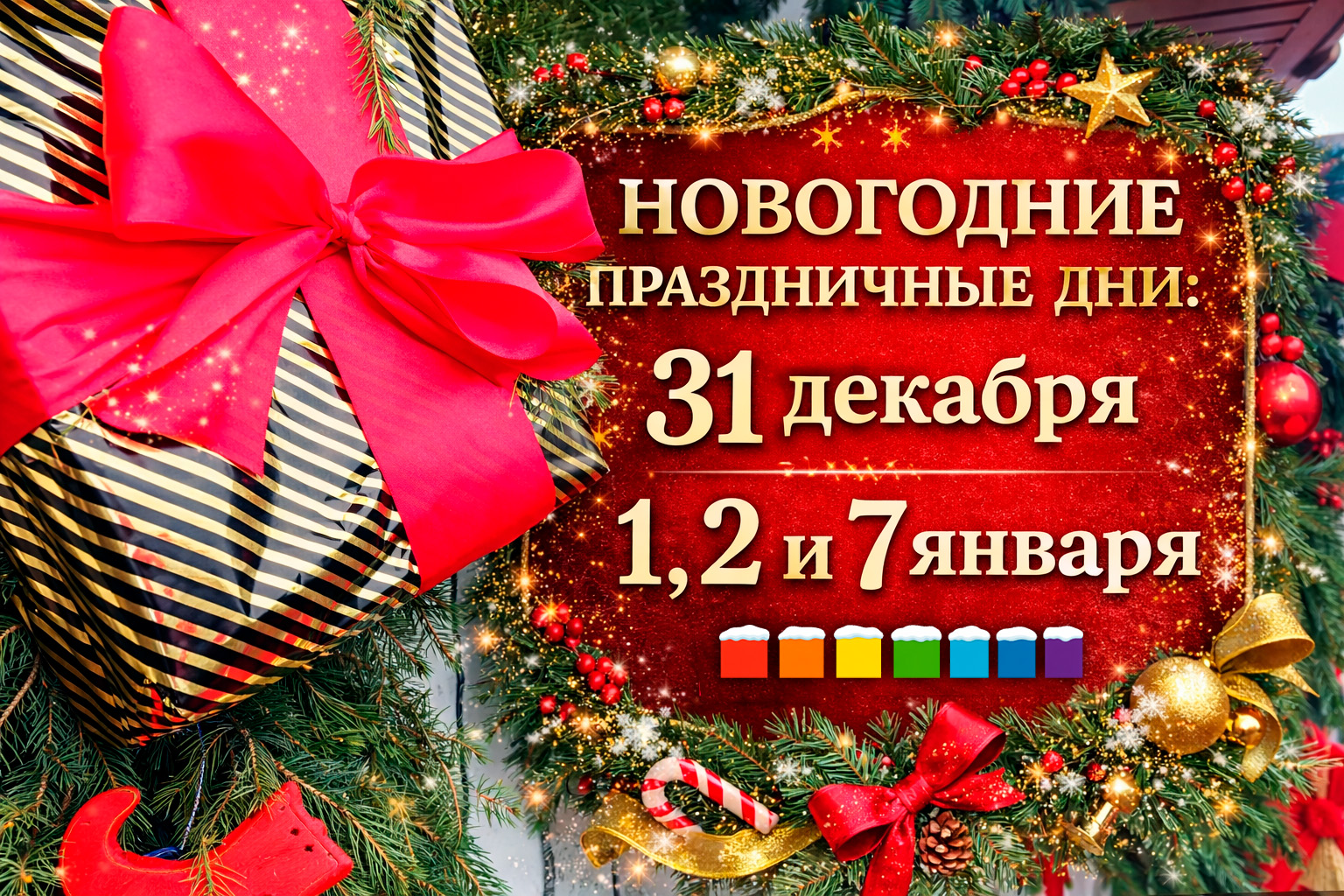 Уважаемые покупатели! Мы поздравляем вас с наступающим Новым годом и обращаем ваше внимание, что в период новогодних праздников у нас запланированы выходные дни.