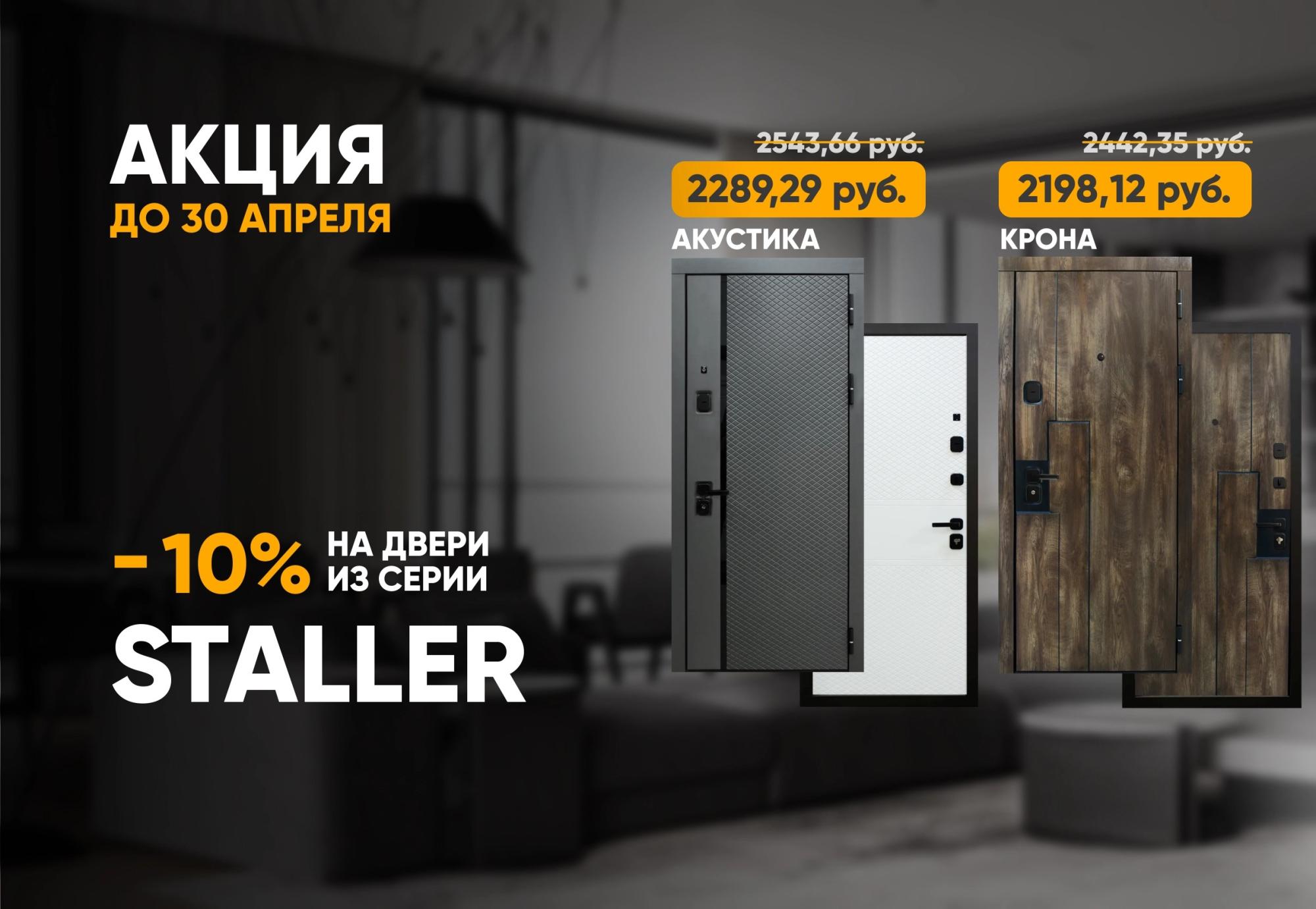 С 18 марта по 30 апреля действует сезонная акция на входные двери Staller и Гарда – отличная возможность подготовить дом к лету и сэкономить до 12%.