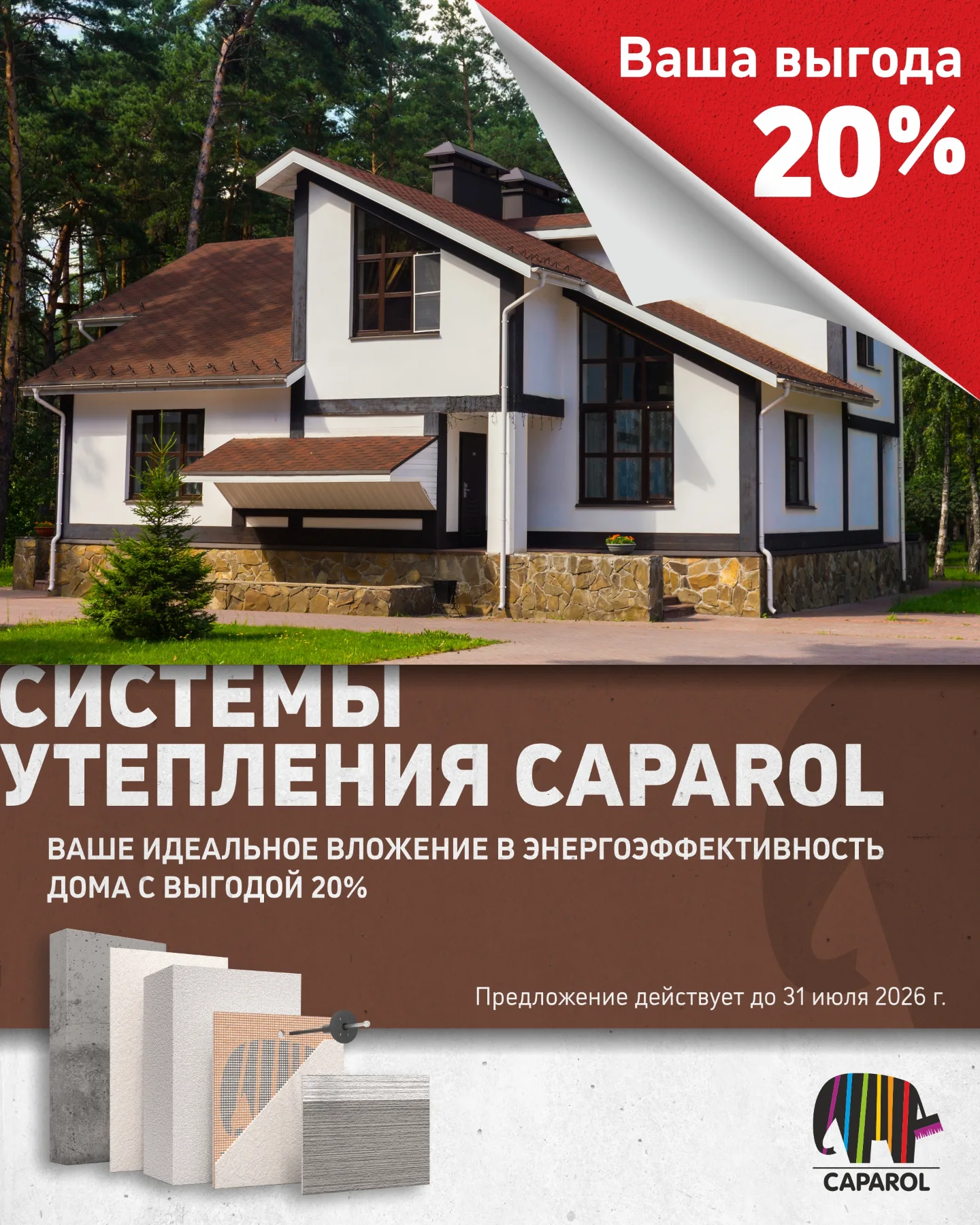 Выгодное предложение от Caparol! –20% на системы утепления фасадов. Предложение действует только до 31 июля – не упустите шанс сэкономить!